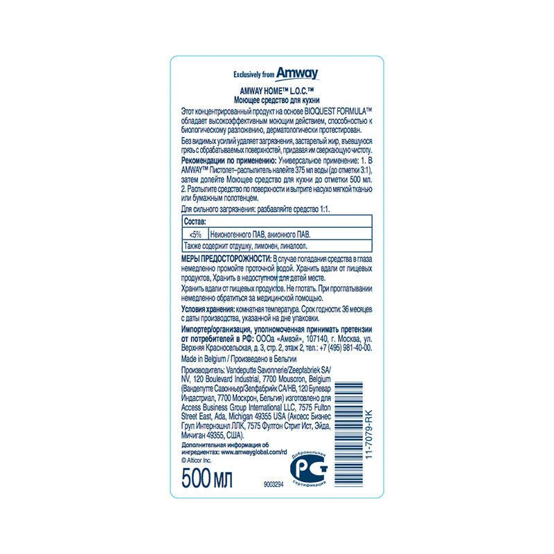 Налейте в AMWAY™ Пистолет-распылитель 375 мл воды (до отметки 3/1). Добавьте концентрированное средство до отметки 500 мл. Распылите на поверхность, затем насухо вытрите.