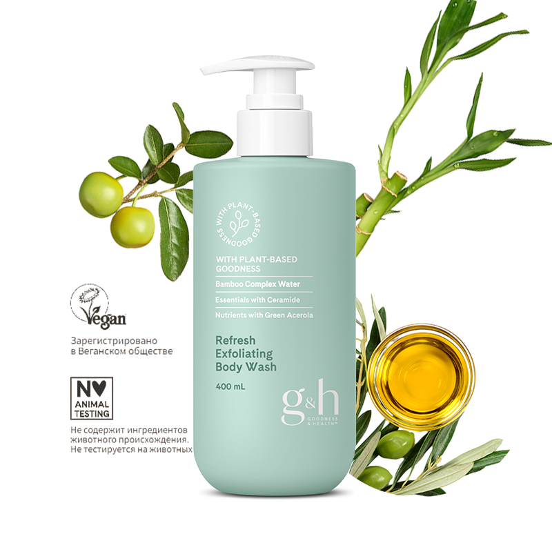g&h Освежающий отшелушивающий гель для душа, 400 мл.